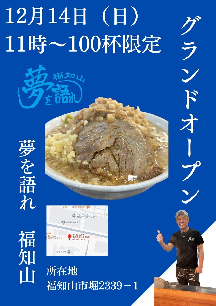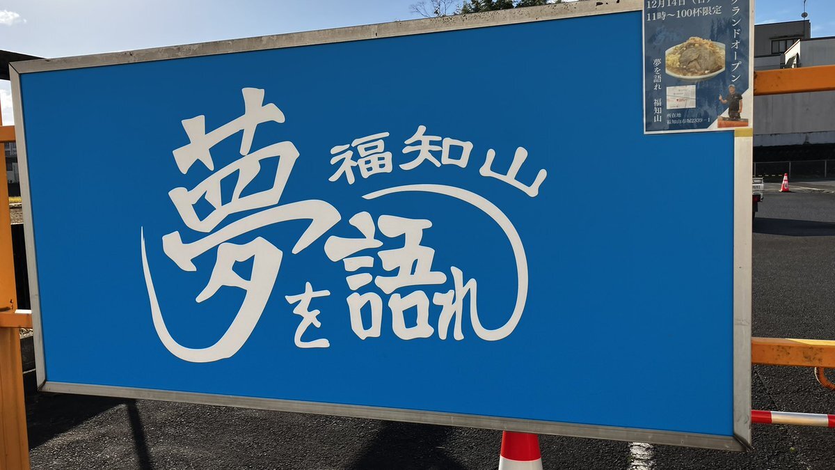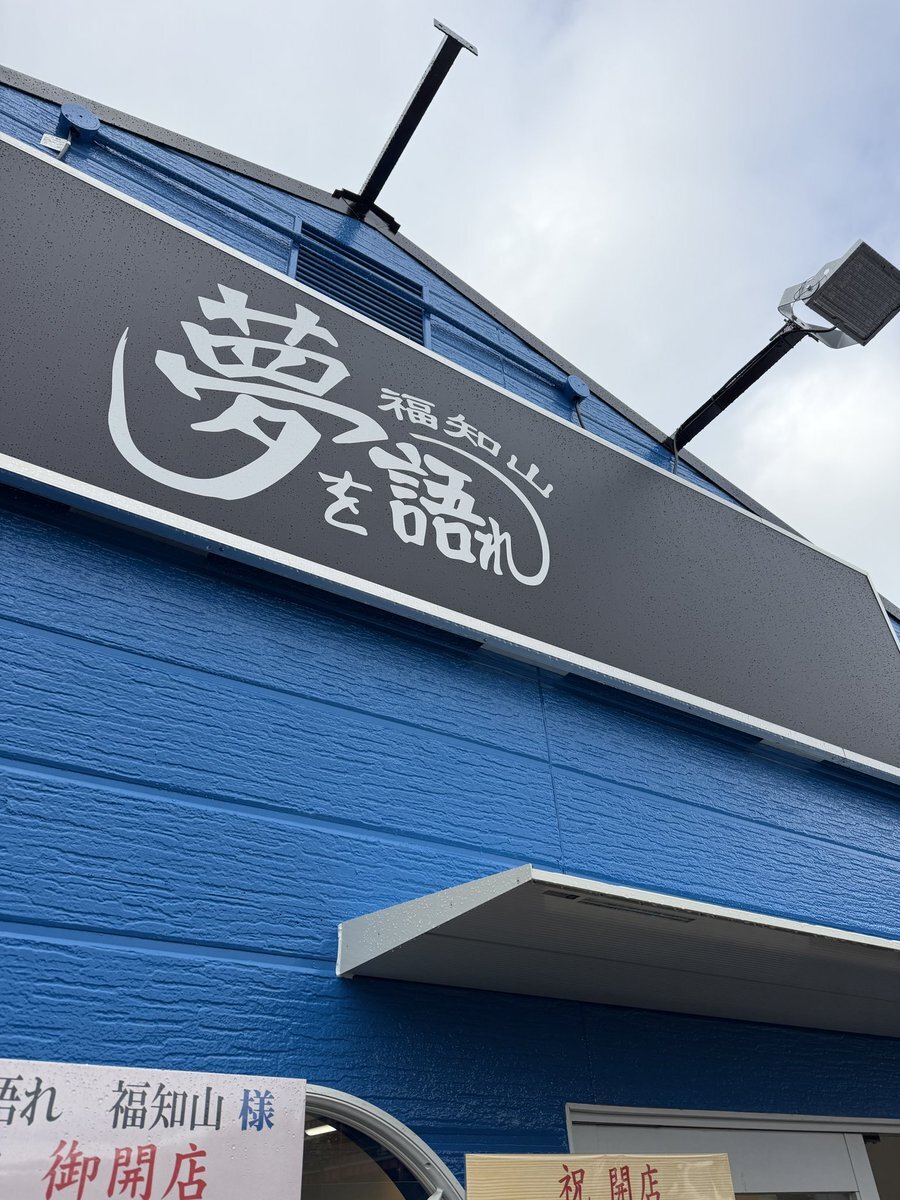 と言うわけで、ラーメン屋「夢を語れ福知山」を見て来ました。 明日グランドオープンみたいです。 自分としては、とうとう福知山にも と言う気持ちです。 落ち着いたら食べに行きましょう。 #夢を語れ pic.x.com/PchNcPH5Rq x.com/ywk_fukuchiyam…