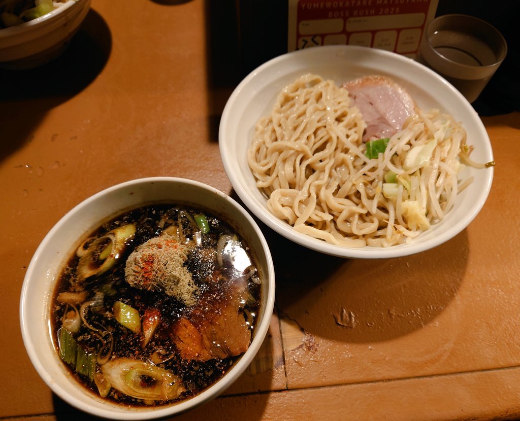 夢を語れ松山 Boss Rush 2025 Day.1 ユメカタの年末恒例の限定祭り🍜 初日は豚南蛮つけそば✨ 甘辛いつけダレがめっちゃ美味しかった😆💕 とろろ昆布もいい味だしてた🤭✨ ブタさんも2種類あってどっちも大きくて大満足🐷💖 300g一瞬でなくなった🤣💕 #夢を語れ #夢を語れ松山 pic.x.com/iZPiqyqRne