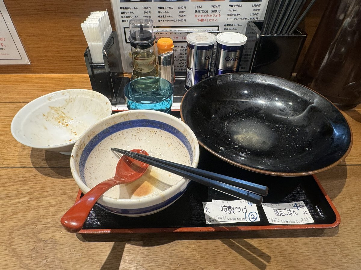 週末🍜 柏市藤ケ谷 #大勝軒てつ さん😀 ✔️塩つけ麺 大盛 ✔️相方:トロ豚ガッツJIRO 赤の油➕️ソースチャーハン 理科大生来襲‼️ ガッツリ豚感G系に負けないコシ強ピロワシ麺がウマ🤩 🐷も破壊力抜群🌟 二代目とRちゃんに会えて幸せな夜🌃 次は鎌ケ谷、週末はてつ三昧💃 ごちそうさまでした❗️ pic.x.com/djeOAfAsV3