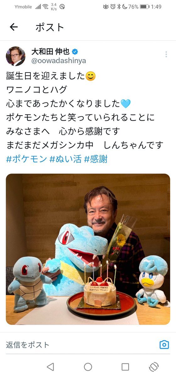 ごめんポケモンガチ勢なんだけど、大和田伸也様のお誕生日にコメントしたら、多分本人様からいいね返って来たんだけど、これって喜んでもいいんだよね?半信半疑なんだけどめっちゃ嬉しいんだけど、興奮止まらないんだけど! #大和田伸也 #ポケモン