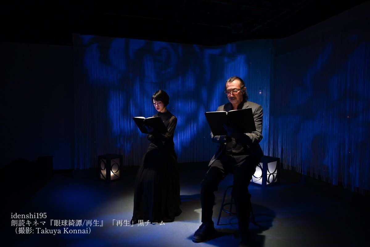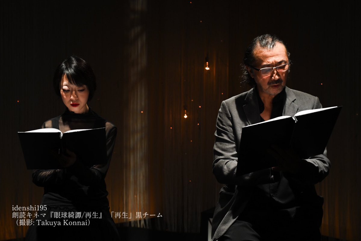 #大塚明夫 さんと #大島朋恵 さんが織りなす朗読劇。声と間。言葉が発せられるたびに、旋律が空間を流れてゆく。それは観客が作りあげた静寂の中を駆け巡り、血肉を得た二つの魂を顕現させた。そう。これは演者二人と観客のセッション。その闇は至高であり至福だった。 #眼球綺譚_再生 #idenshi195