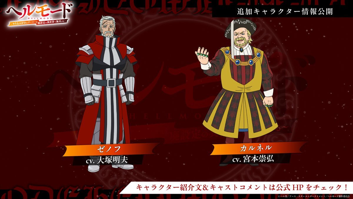 ◤#ヘルモード 🎮 追加キャラクター情報◢ □━━━━━━━━━‥・ 📜ゼノフ:cv.#大塚明夫 さん 📜カルネル:cv.#宮本崇弘 さん ⚔公式HPにてキャラクター紹介文& キャストコメントを公開‼ hellmode-anime.com pic.x.com/oyrPsRgRR2