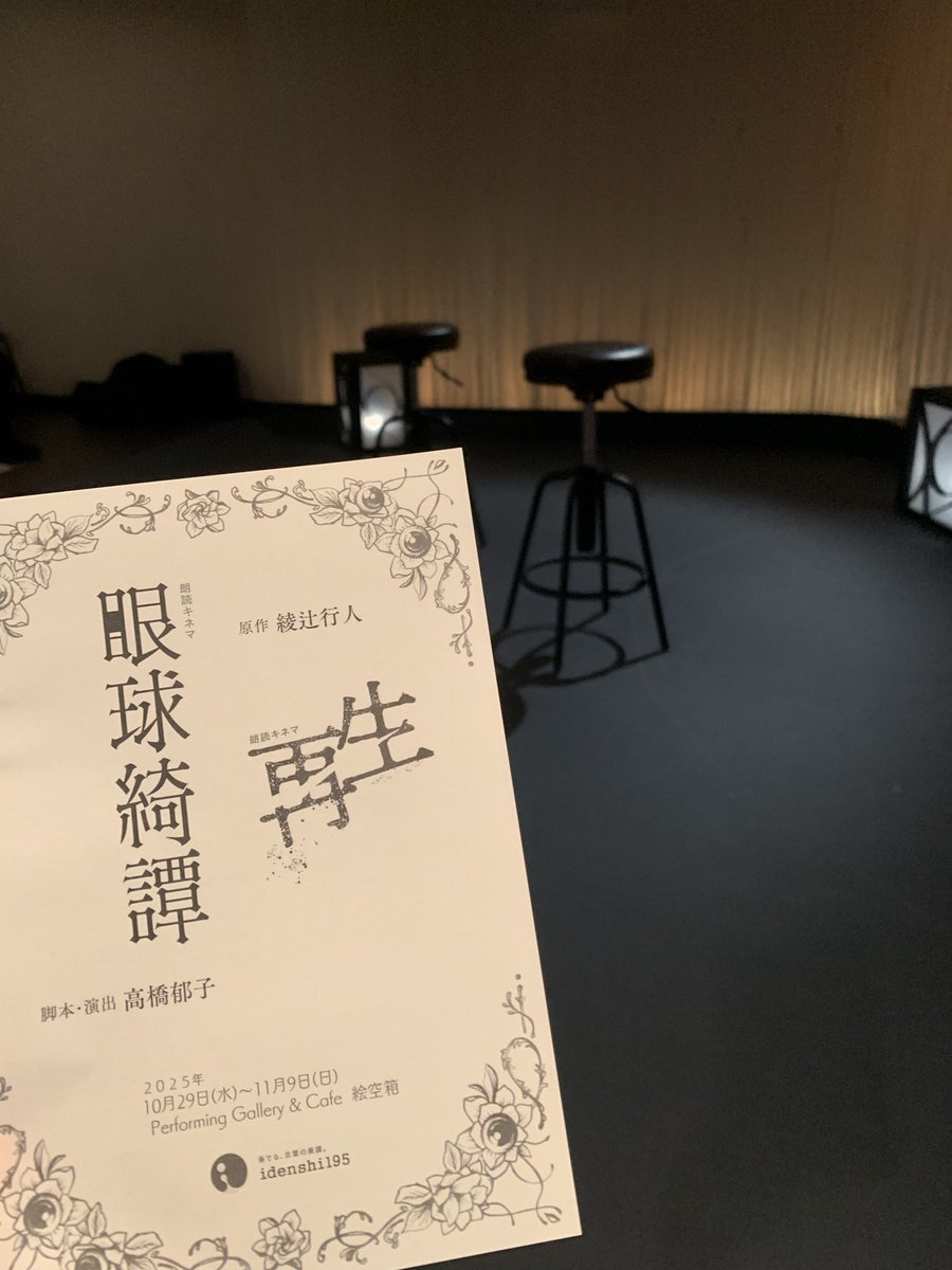 2025.11.8 #眼球綺譚_再生#大島朋恵 推し^ ^ #大塚明夫 原作の“強さ”に負けない配役 少女妖精然としたヘアメイク化粧衣装の大島さん、時に涼やか時に妖しいその眼差し・発声に惹きつけられる! 大塚さんは素晴らしいの一言! 照明秀逸👍 連日 #松兵衛 駅前店^ ^ pic.x.com/flXSq5SCQG