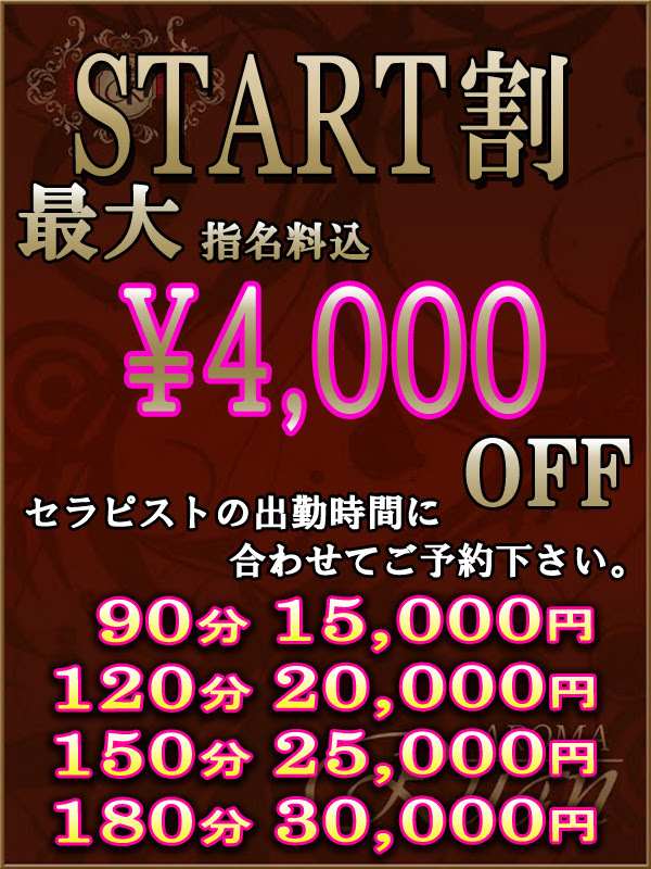 🌸新人限定割引🌸 90分 指名料 17,000円+1,000円=18,000円 ➡ 13,000円 120分 指名料 22,000円+1,000円=23,000円 ➡ 18,000円 ※ご予約、受付時に『新人割』とスタッフにお伝えください。 #大宮メンズエステ #新人割引 pic.x.com/b1uBRaZEEG