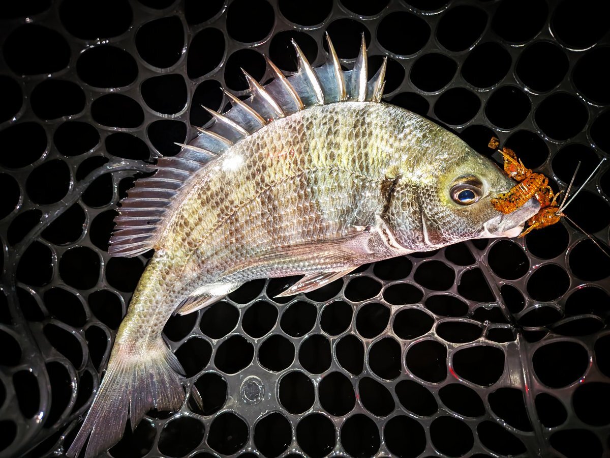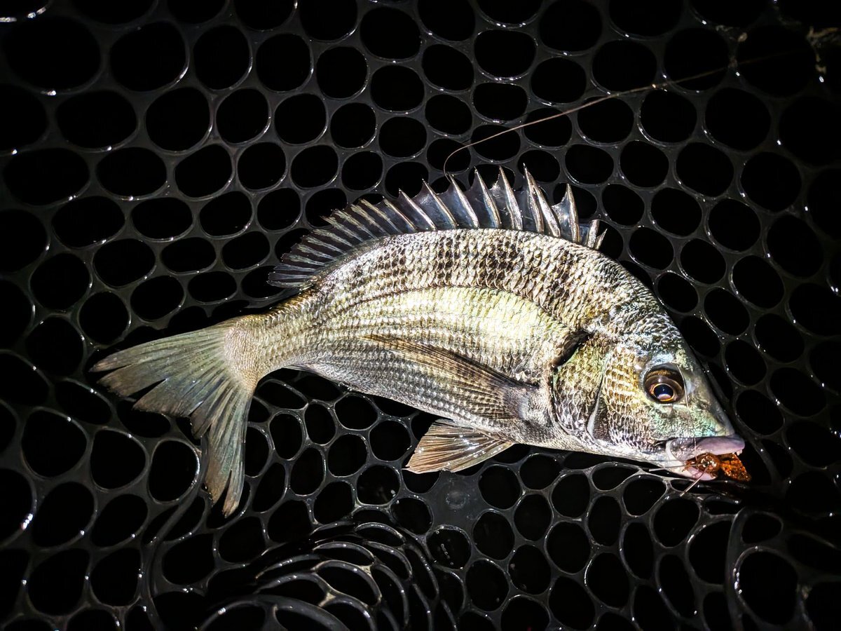 しごおわナイトチニング🌙 フリーリグで丁寧にボトム探り🎣 上げの入り早く開始直後に良型ヒット🔥 アタリ少なめも1発で食う展開! 1時間半で4枚キャッチ👌 #チニング #フリーリグ #ナイトゲーム #チヌ #大村湾 pic.x.com/WJqshhnHdT