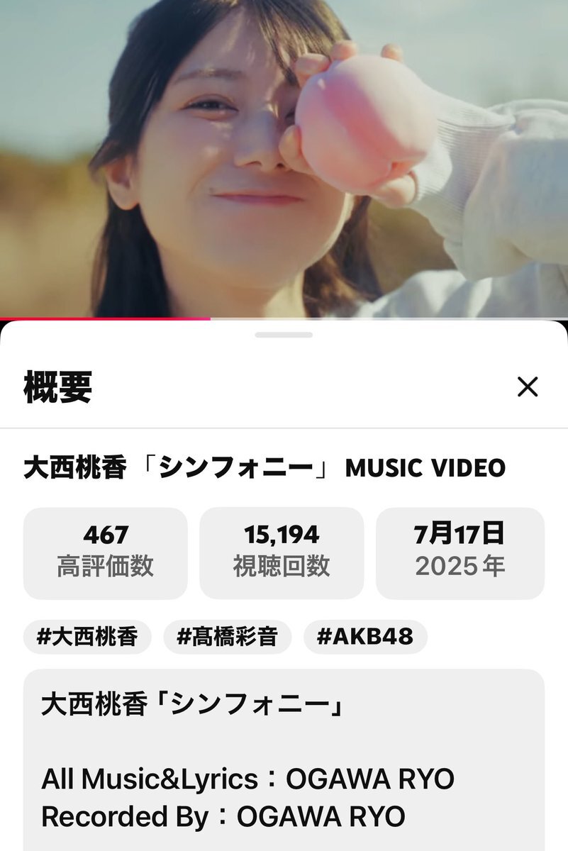 15000回越えましたね🍑☺️ #大西桃香🍑 「#シンフォニー」 MUSIC VIDEO youtu.be/vRdMndsEqIs?si… @YouTubeより pic.x.com/JTrS1TCanw
