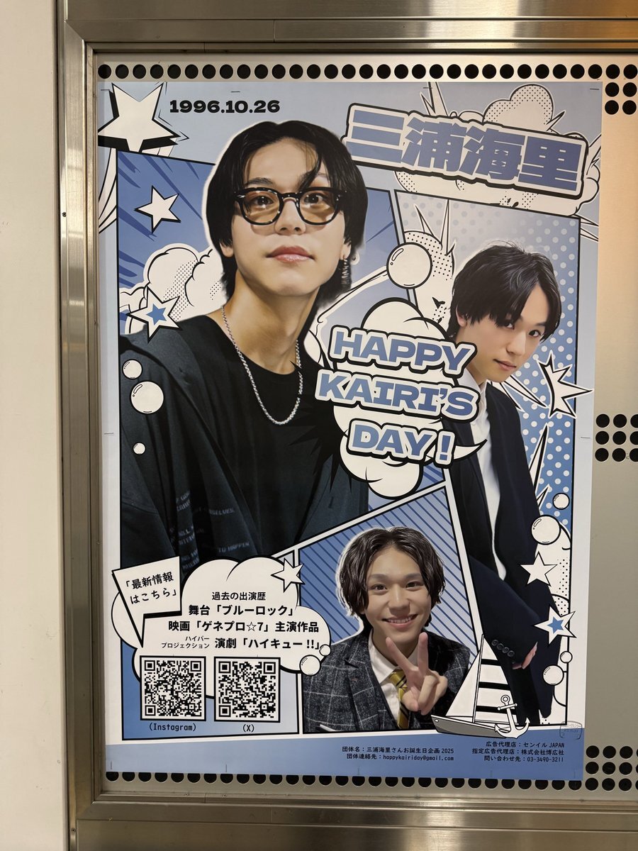 カルコメ後、渋谷駅に移動中発見。 12月上演の #ガラスのカラス で #大西桃香 ちゃんと共演の #三浦海里 さん。 舞台頑張って、舞台からサーで共演した方との再共演が夢だった桃ちゃん。塚本さん涼太郎さんに続いてその夢が叶うの胸アツです😭 海里さん、お誕生日おめでとうございます🎂 pic.x.com/g4oFUu06an