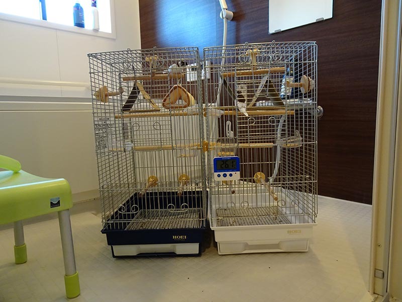 #大規模修繕 今朝は風呂場へ緊急避難 風呂場も窓があるから気が抜けない。 午後は廊下の鉄部塗装がはじまるから、違う部屋へ移動。 合宿までお部屋点々とするけど、2羽一緒なら楽しいね。 pic.x.com/CeWXRWguR1