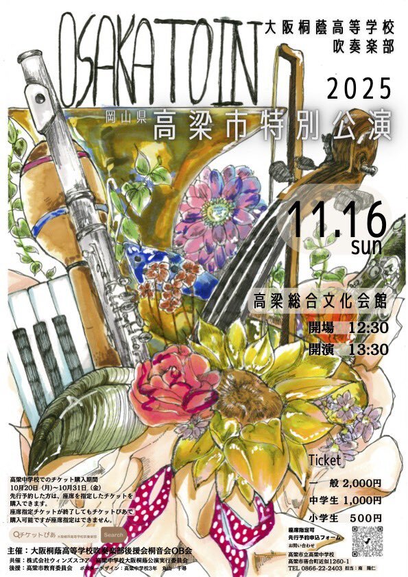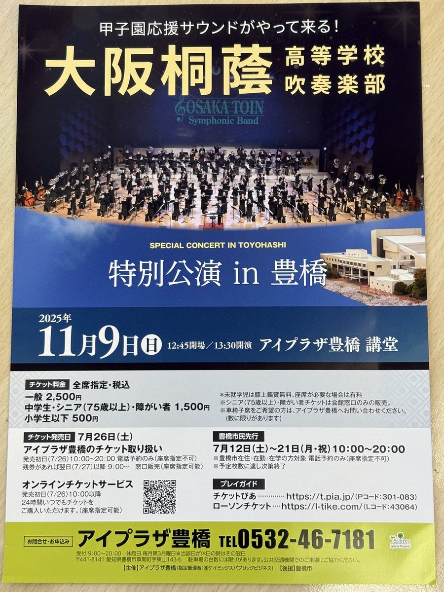 大阪桐蔭高校吹奏楽部 「高梁市特別公演 2025」 ■公演日時 2025年11月16日(日) 13:30~ ■会場 高梁総合文化会館 ■詳細・チケット t.pia.jp/pia/ticketInfo… #岡山県 #高梁市 #コンサート #大阪桐蔭 #吹奏楽 pic.x.com/qGs7ggUtCR