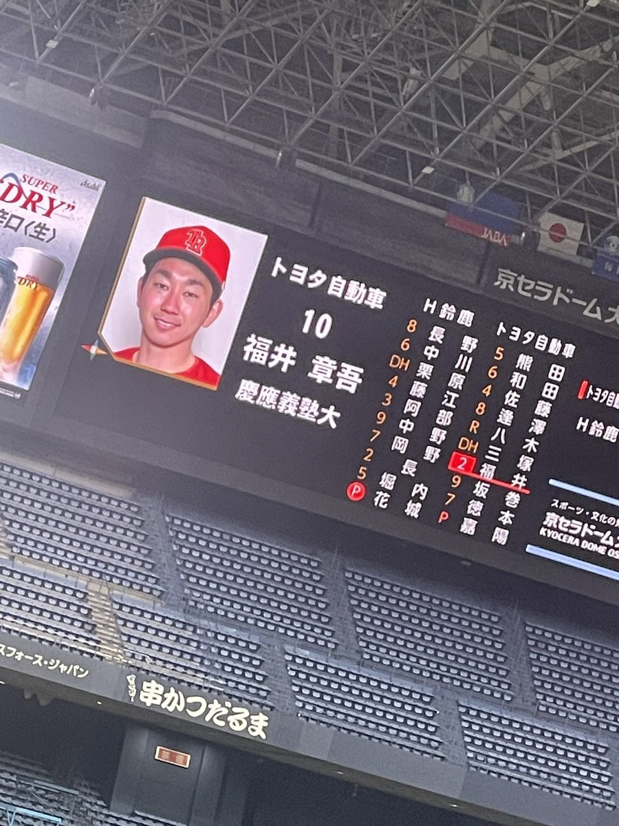 数年ぶりに貴方を観れました! 細かいカバーリングとしぶといバッティング流石っス! ええどー章吾ーっ! #大阪桐蔭 #福井章吾 #トヨタ自動車 #社会人野球日本選手権 pic.x.com/pyBR1RFJB1