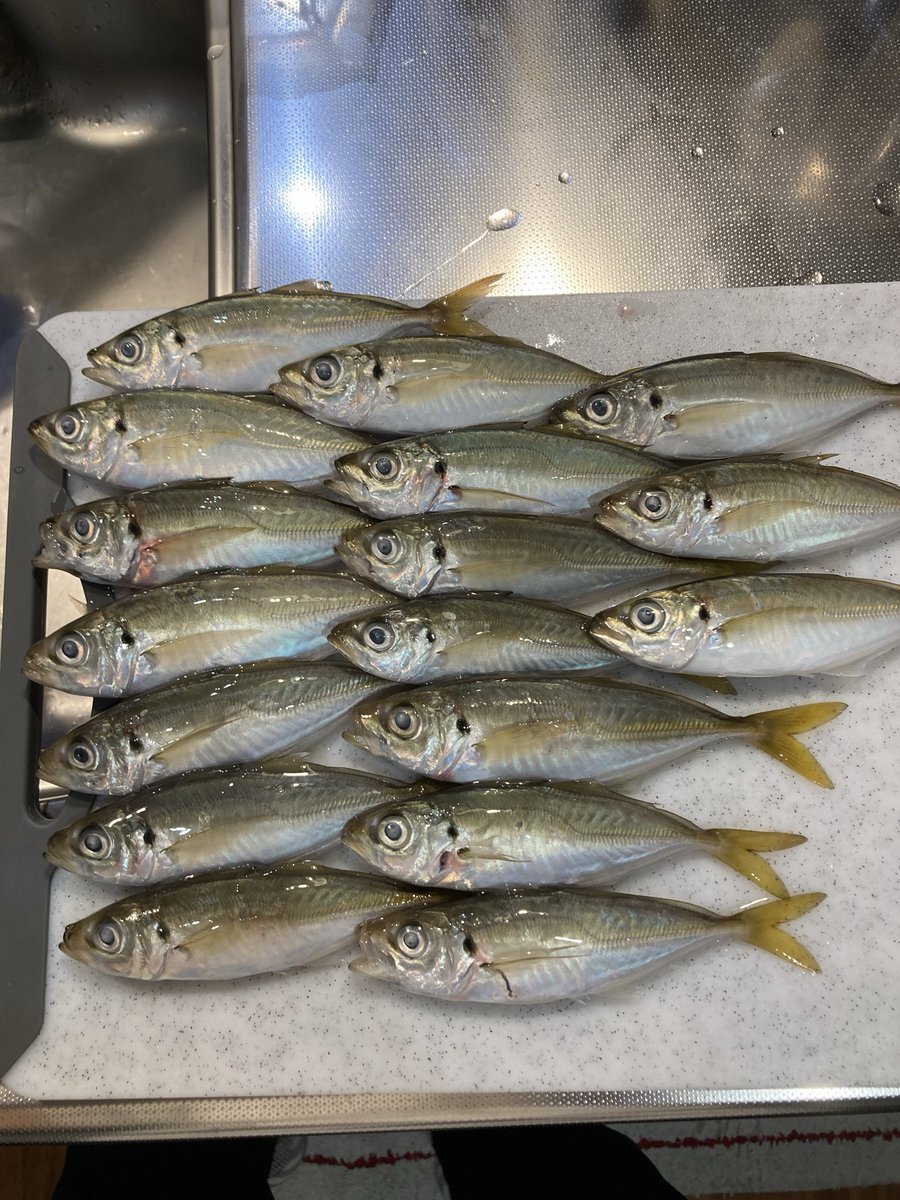 昨日10/9の釣果 泉大津アジング17匹 強風の中、夕方から日没直後まで釣れました🐟 まだまだ釣れる気配でしたが、寒くなってきたし、魚捌くのも大変なので‥で帰宅 ただいま今夜のアジフライ準備中です♪ #アジング #大阪湾 pic.x.com/3SMoW8g6bf