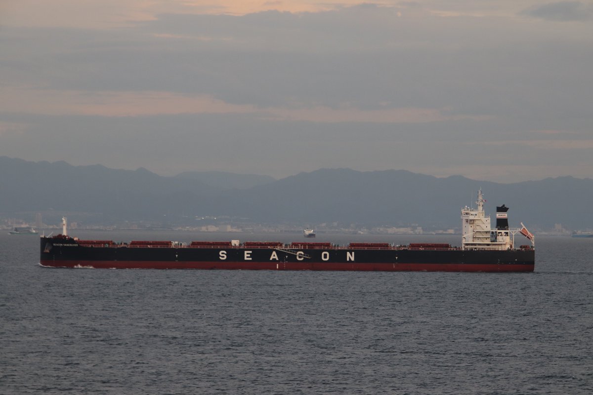 9/24 「SEACON VANCOUVER」 大阪湾内を航行中のばら積み船 新居浜港から 大阪港へ向けて航行中、 石炭の荷揚げでしょう 船体側面に表記が有る通り 中国の SEACON SHIPPINGの運航船 2023年竣工の比較的新しい船なので 中国製ですが 造形もしっかりしています #大阪湾 pic.x.com/KiCxcuDUY4