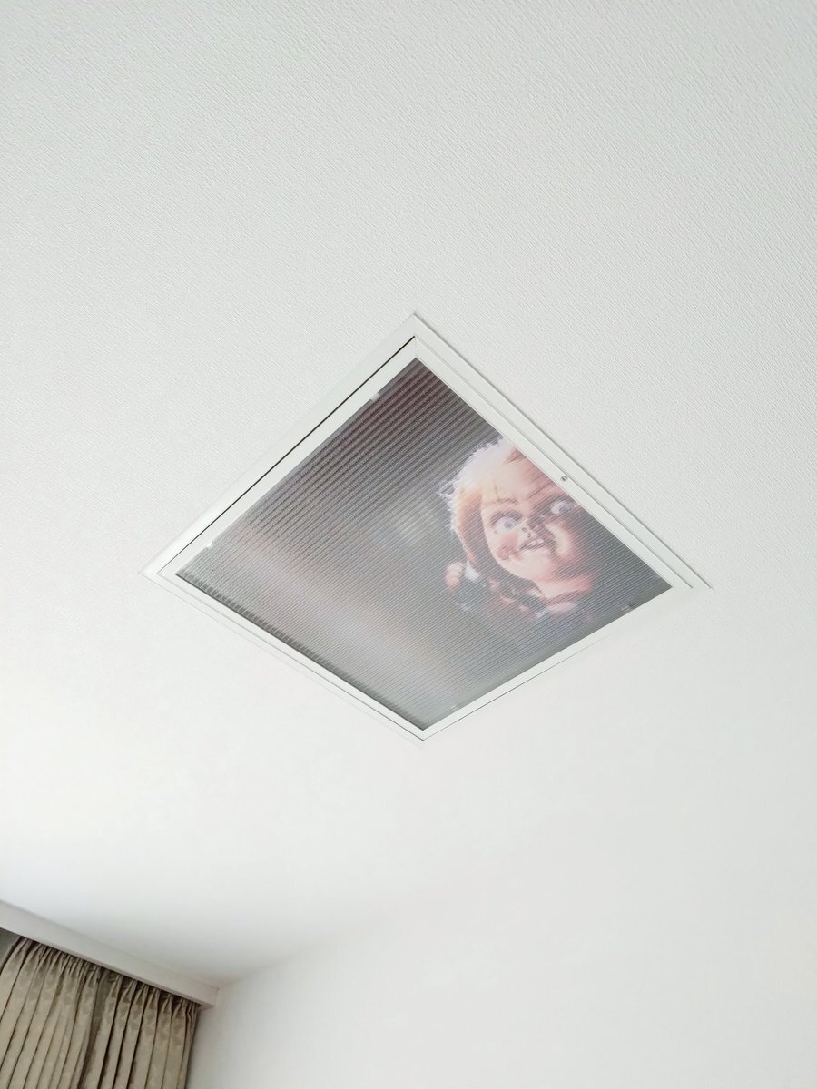 #リフォーム #天井 リフォーム終了して一通り見渡したらΣ(,,ºΔº,,*)数日前から仕掛けてあったらしく「今更気づいたんかい!」と。工務店の方が遊び心で天井の点検口に仕掛けてくれましたぁ… pic.x.com/qWGBaMGx6v