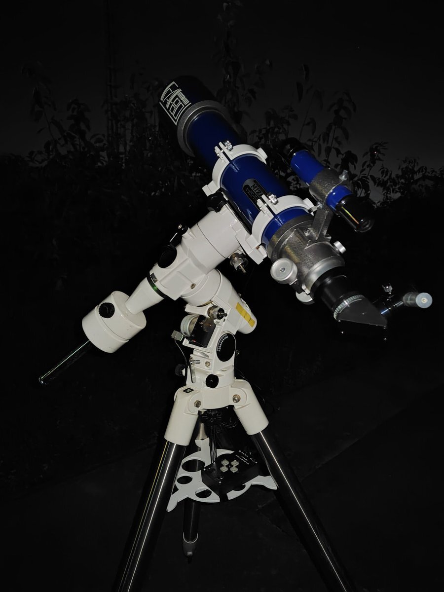 先日ヤフオクで落札した赤道儀 EQ5・2軸モーター仕様 テストしてます。 ミザールFA-80フローライト ジャンク接眼レンズ十字線仕様もテスト中です。電源入れ追尾は楽ちんです😊✌️十字線仕様アイピーステスト #天体望遠鏡 #お月見 #フローライト望遠鏡 #ミザール #星のソムリエ®️ #岐阜市 pic.x.com/yv1hQ2EIW1