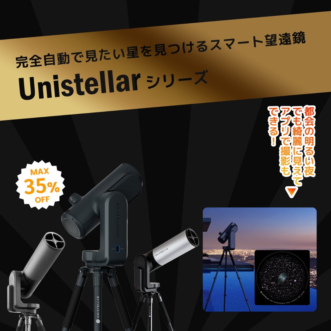 🌌今回はなんと…あの #Unistellar #スマート天体望遠鏡 が #Amazonスマイルセール に参戦✨ MAX3⃣5⃣%OFFに👀‼ 星空観察がもっと身近に、 アプリ連携で自宅でも簡単に宇宙体験🚀 このチャンスをお見逃しなく! 🛰️x.gd/R6ri5 #天体望遠鏡 #秋の夜長 #天体観測 #セール情報 pic.x.com/R1f8faWCoV