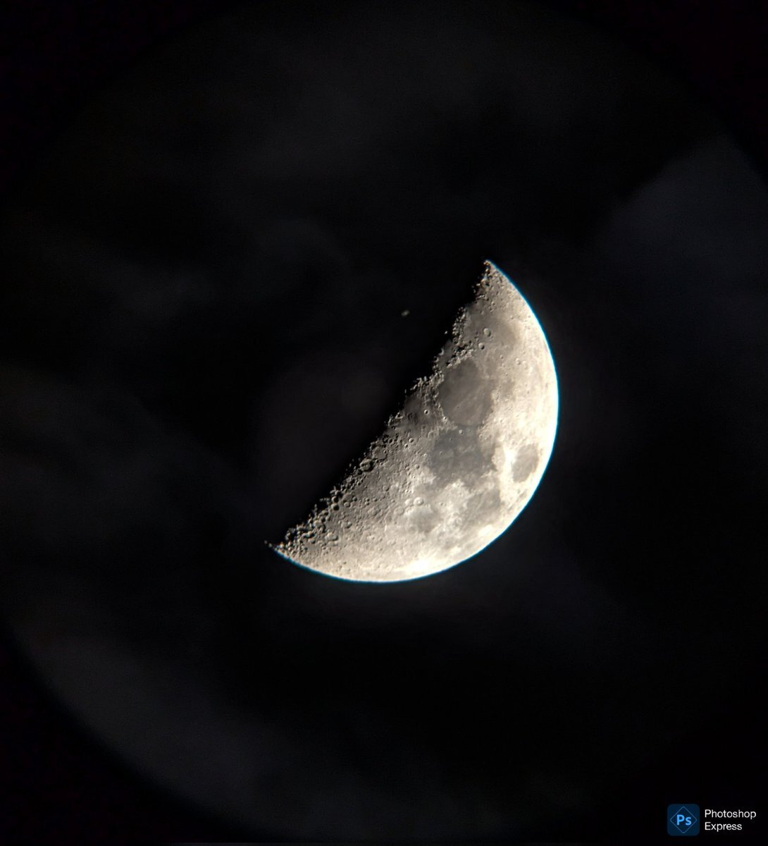 こんばんわ。🌃 今日の月 秋空の上空に月が浮かんでいます。 本日の月名、 弓張月。 輝面比 34.6% 月齢 6.5 午後16時 03分撮影 #イマソラ #イマツキ #弓張月 #月撮影 #天体望遠鏡 #スマホコリメート撮影 #スマホ撮影 pic.x.com/Ai0FBAwfgz