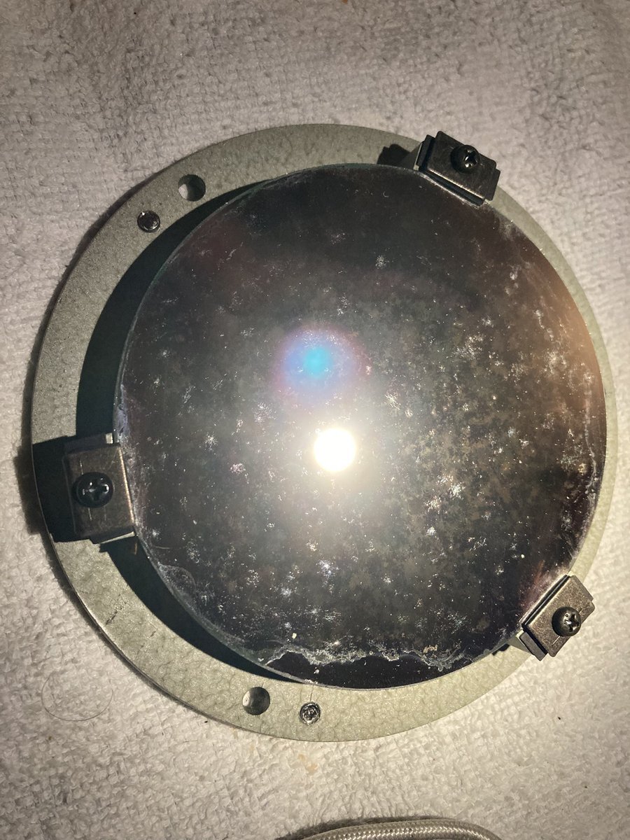 #天体望遠鏡 #反射望遠鏡 ぐえーー!洗浄したけど、膜抜けがエグい… 30年以上経ってそうだから、まあ… 精製水と無水エタノールでカビや汚れは落ちたけど… とりあえずこのまま鏡筒に組む。 セルの構造は、主鏡とのクリアランスほぼ無い、光軸ズレ対策? pic.x.com/8d3NreS0wl