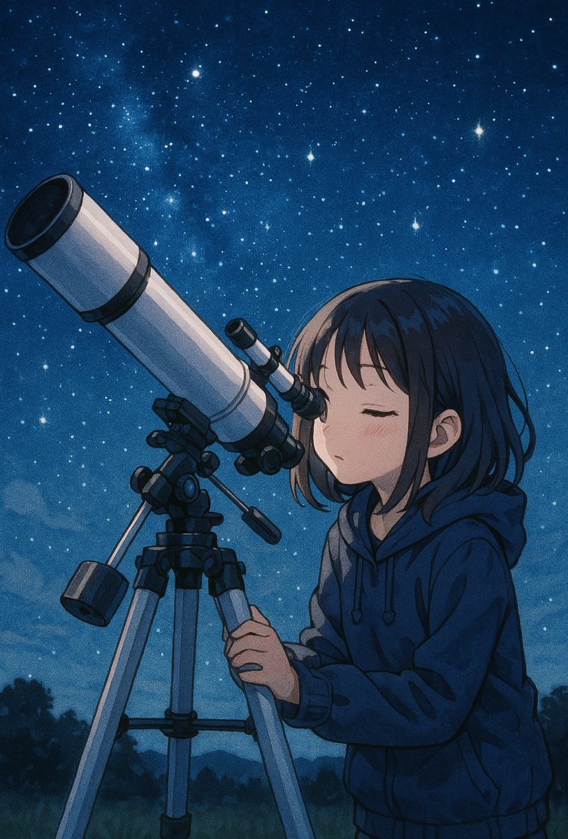 #おはようございます 女の子が #天体望遠鏡 を覗いています 遠くの天体の光を集めて明るく拡大し、肉眼では見えない天体を観察するための装置 主な構成要素は、光を集める「鏡筒」、安定して動かす「架台」、架台を支える「三脚」 主な種類は、光を集める「屈折式」と「反射式」 本日もお元気で❗ pic.x.com/2lEfAPTq29