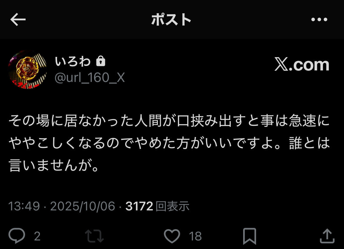 いろわ@url_160_X この方は透さんが謝っていないという事実無根の情報を流し、印象操作をする行為が見受けられます また謝罪や訂正もなく、反省する様子がありません #baybladex #bayblade #ベイブレード #ベイブレードX #迷惑行為 #鹿乃つの #ネットリンチ #くら寿司 #天宮しゅな pic.x.com/Dw0B0KShE3