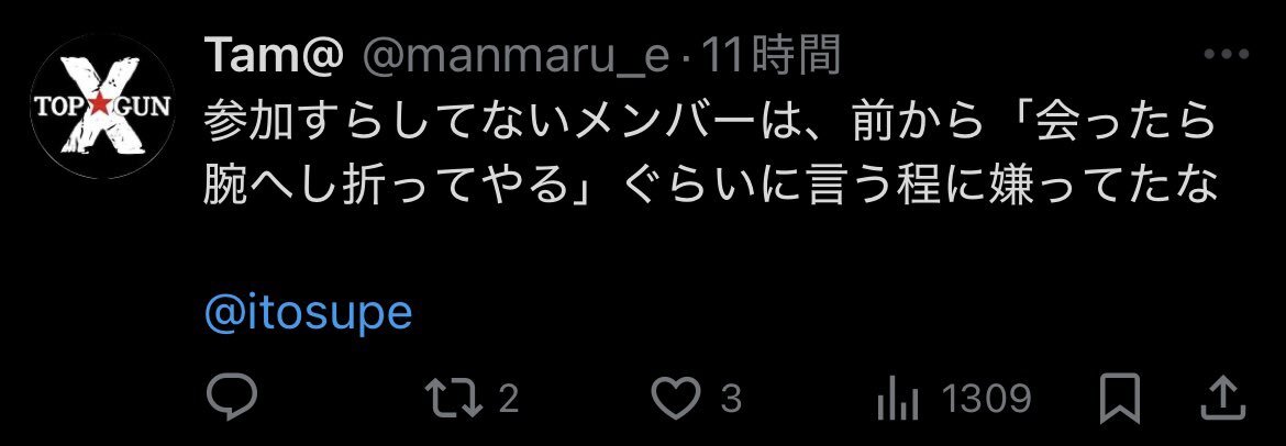 はいそれ脅迫ね。 腕へし折ってやるなんて言うチームだから出禁者が出るんだろ? @manmaru_e #TOPGUN #拡散希望RPご協力お願い致します #拡散希望 #ベイブレードX #コレコレ #ゆりにゃ #鹿乃つの #天宮しゅな #広陵高校 #誹謗中傷 #ネットリンチ pic.x.com/KtXx8Ko4uh