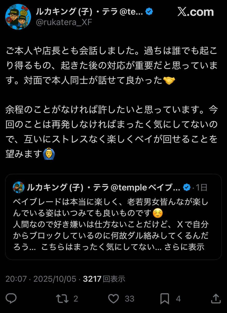 TOPGUNのトップは自分のルールを押し付けて周りの迷惑を考えません。対話の場を壊しているのは常にTOPGUN側ですよ @manmaru_e #TOPGUN #拡散希望RPご協力お願い致します #拡散希望 #ベイブレードX #コレコレ #ゆりにゃ #鹿乃つの #天宮しゅな #広陵高校 #誹謗中傷 #ネットリンチ pic.x.com/5YLet9Ojbr