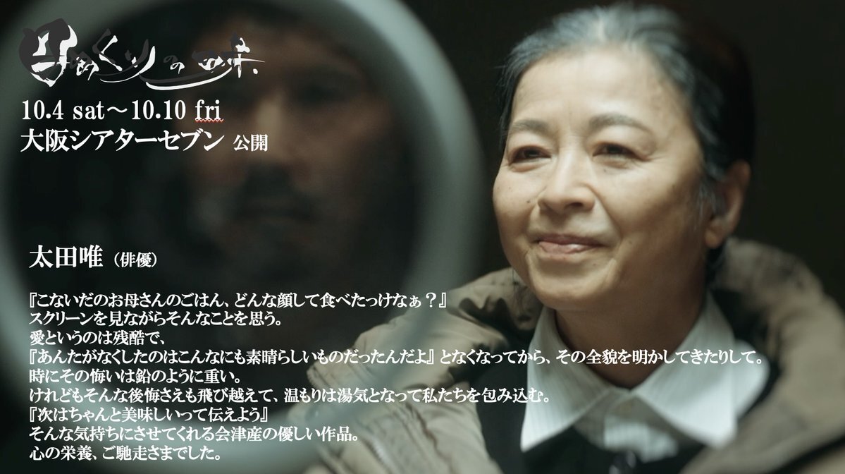『日めくりの味』 大阪十三 シアターセブン 10/4 sat 〜 10/10 fri theater-seven.com 太田唯(俳優)さん コメント #太田唯 #大阪 #シアターセブン #日めくりの味 #映画 #会津 pic.x.com/LGjvjJYE11