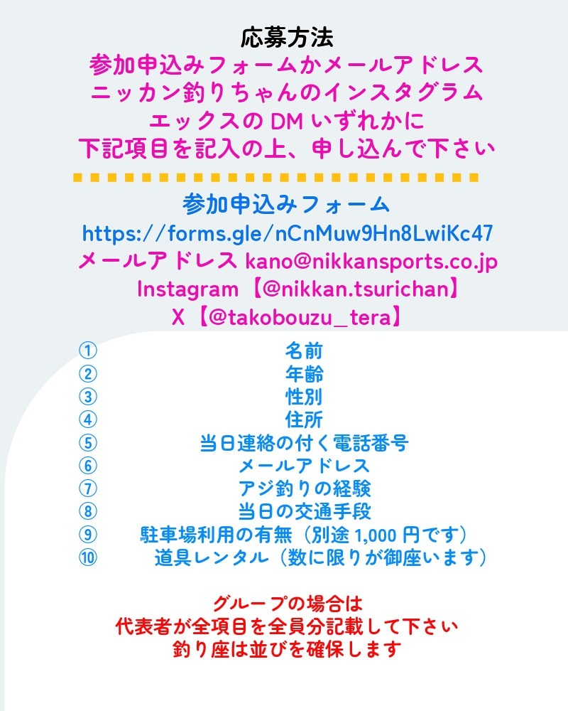 2025年12月7日(日) ゲストの哀川翔さん&太田唯さんと アジ釣りしましょ!! お申し込みはこちら↓ forms.gle/nCnMuw9Hn8LwiK… #ニッカン釣りちゃん #哀川翔 #太田唯 #タチウオ #釣りガール #釣り女子 #釣り pic.x.com/flyt6LFHX0
