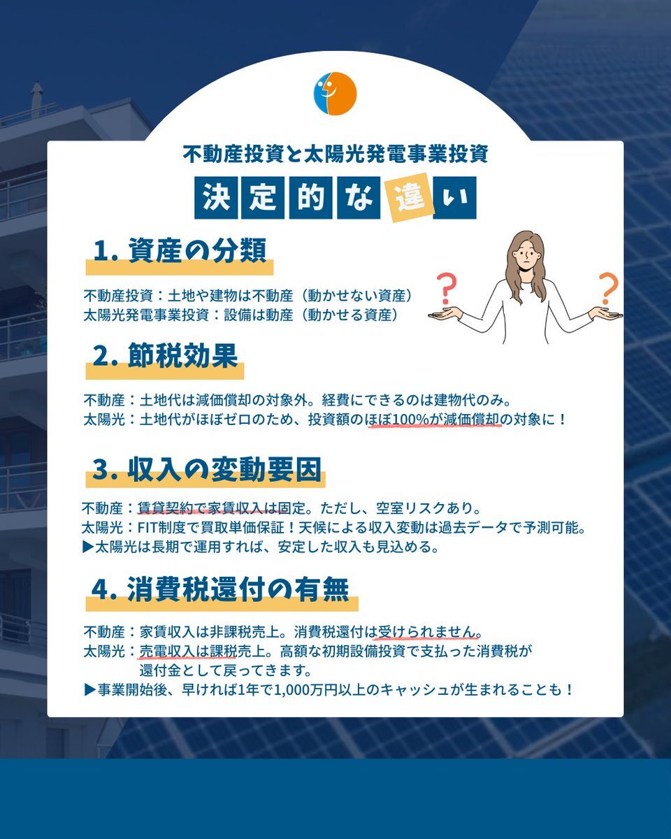 / どっちが得⁉️ \ 不動産投資🏠vs太陽光投資☀️ 仕組みや節税効果をわかりやすくまとめました! #太陽光発電 #中古太陽光 #資産運用初心者 #投資勉強中 #副業探し #投資セミナー #無料セミナー #資産形成 #太陽光発電投資 #株式会社アポロ pic.x.com/UGuXXaALD7