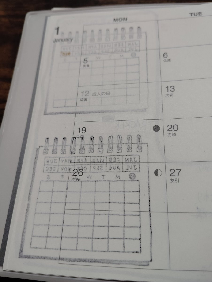 やらかしたぁ😱2025年の12月から新し手帳を使い始めるわたしの手帳。2026年度1月のページにスタンプの裏写り😅気合い入れて綺麗にと思いっきり押したらこの有り様。試し押しすれば良かった😌 #手帳タイム #手帳失敗 #失敗 pic.x.com/nP4j49IUQ9