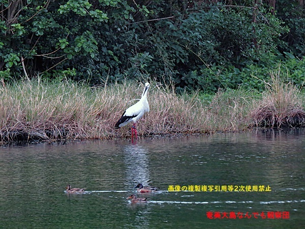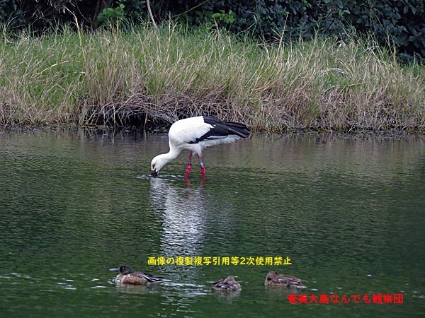 #コウノトリJ0067が奄美大島滞在中に出会った鳥 #ハシビロガモ が湿地に飛来、コウノトリと一緒になる カモ類はコウノトリと餌が違うので殆ど同行はしない、カモが水中をかき混ぜると餌が驚いて飛び出すこともあるので、それを狙うこともある #コウノトリJ0067の奄美大島滞在記録 #奄美大島 pic.x.com/np5bQxx6sB