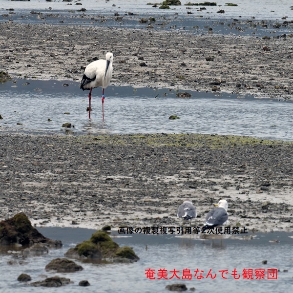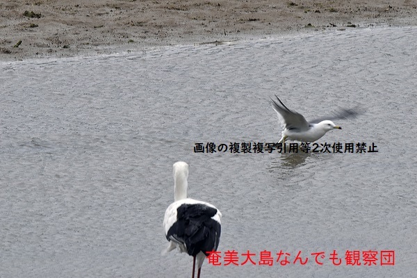 #コウノトリJ0067が奄美大島滞在中に出会った鳥 #コウノトリJ0067の奄美大島滞在記録 #奄美大島 #コウノトリ #コウノトリJ0067 #ウミネコ ウミネコ等、カモメ類は冬鳥として渡来するけど稀、多くはない、ウミネコもコウノトリが接近すると逃げ出していました pic.x.com/V1YmKuJHji
