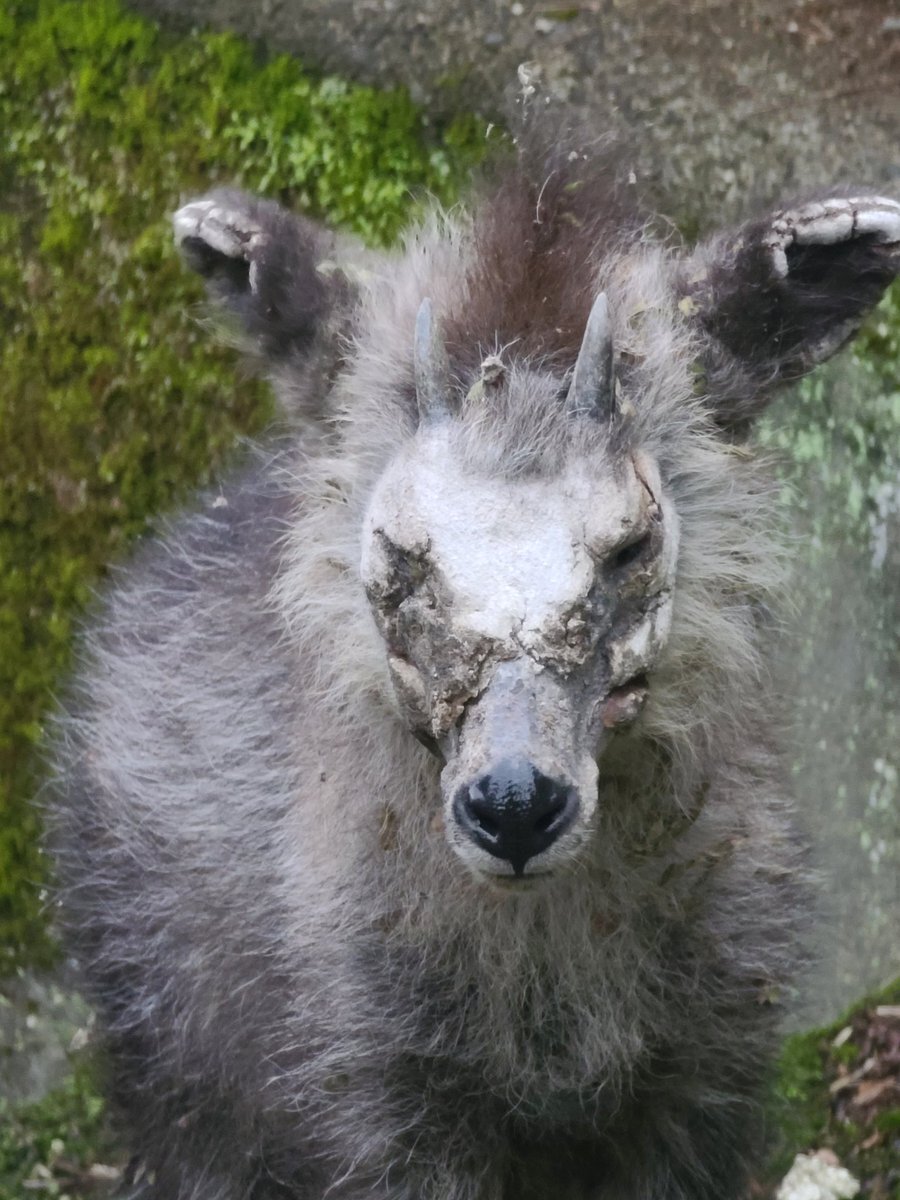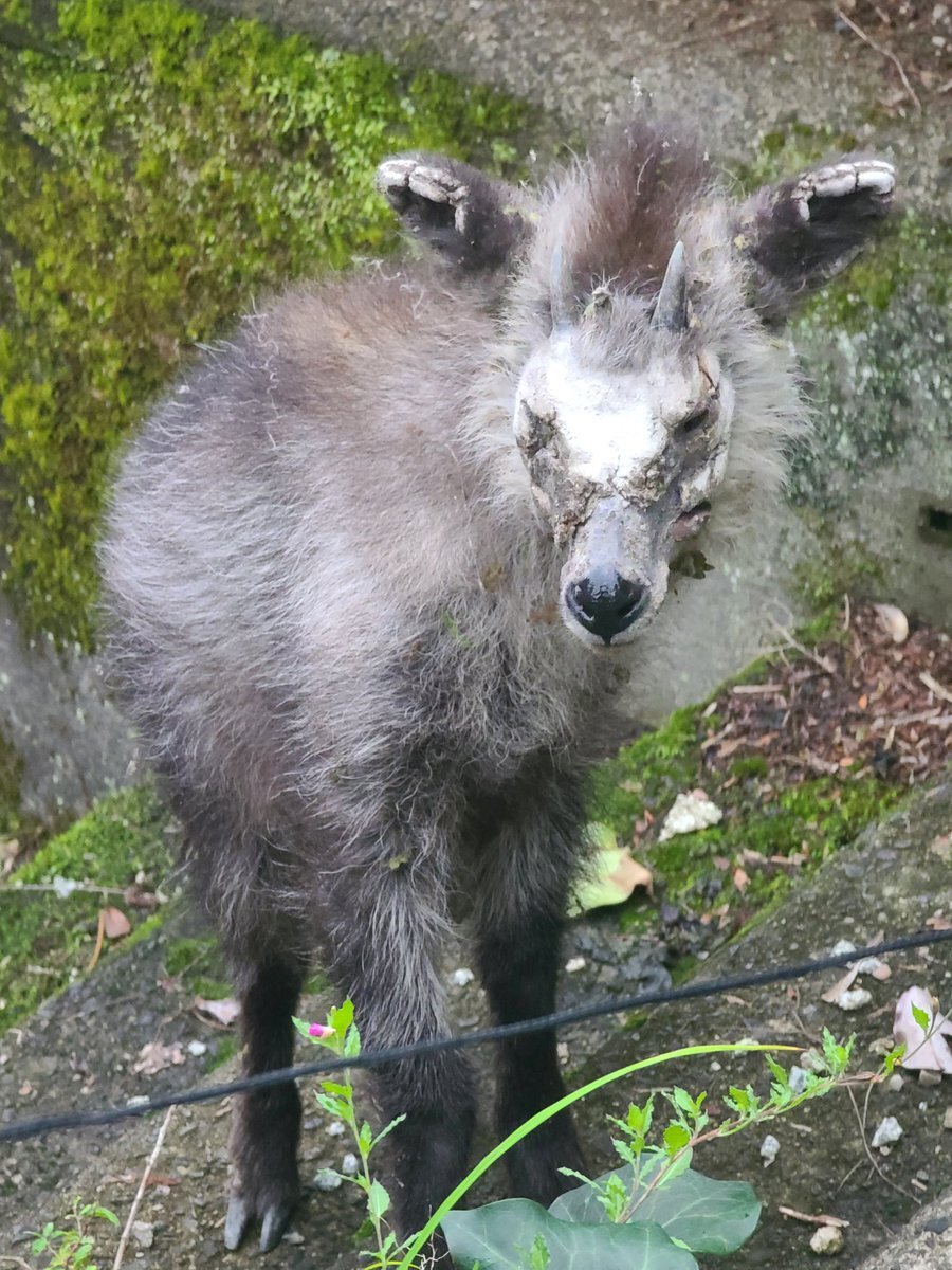 奈良県五條市西吉野。ワオ‼️😲‼️ 17時、庭の水やりをしていたら、なにやらおかしな影が。鹿、それも日本カモシカ😵‍💫 熊じゃなくて良かったけど、逃げないし……。ついに野獣と共存? #ニホンカモシカ #奈良県五條市 #庭に出没 #驚いた pic.x.com/g04ELTPsST