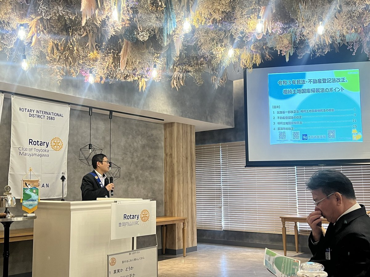 【豊岡円山川ロータリークラブ第2442回例会】 今日は「近時の不動産法制改正と登記手続きについて」のテーマで、佐藤弘樹会員(さとう法務事務所)による会員スピーチが行われました。 #豊岡市 #但馬 #ロータリークラブ #豊岡円山川ロータリークラブ #例会 #奉仕 #学び #アールベルアンジェ豊岡 pic.x.com/4wxJDmpVOX