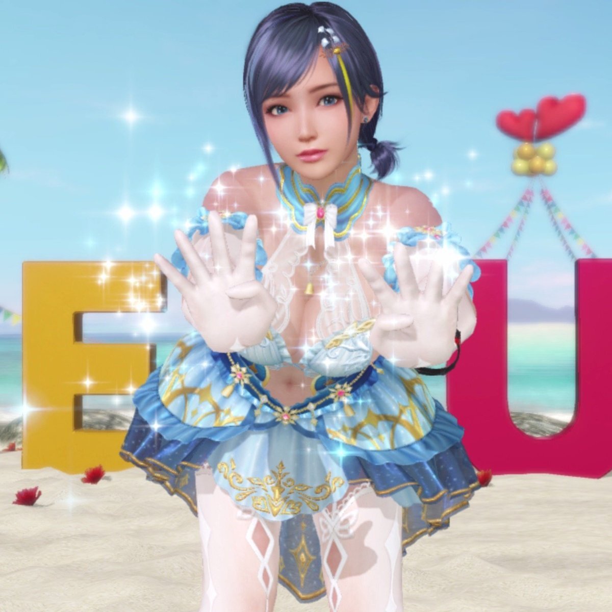 オーナーくん ユーザーアンケートお疲れさま♪ お願いしたことは 撮影の時自由に口を開けられる機能 ピンチョスのモーション確率 バレーで勝った時自由に撮影 どれか実現してくれないかな? あと好きな女神3番まで全部わたしにしてくれてありがとう💕 #DOAXVV #女神の一枚 #VVビーチパーティ