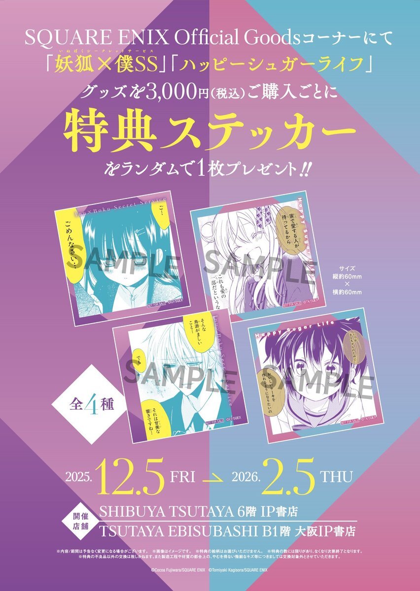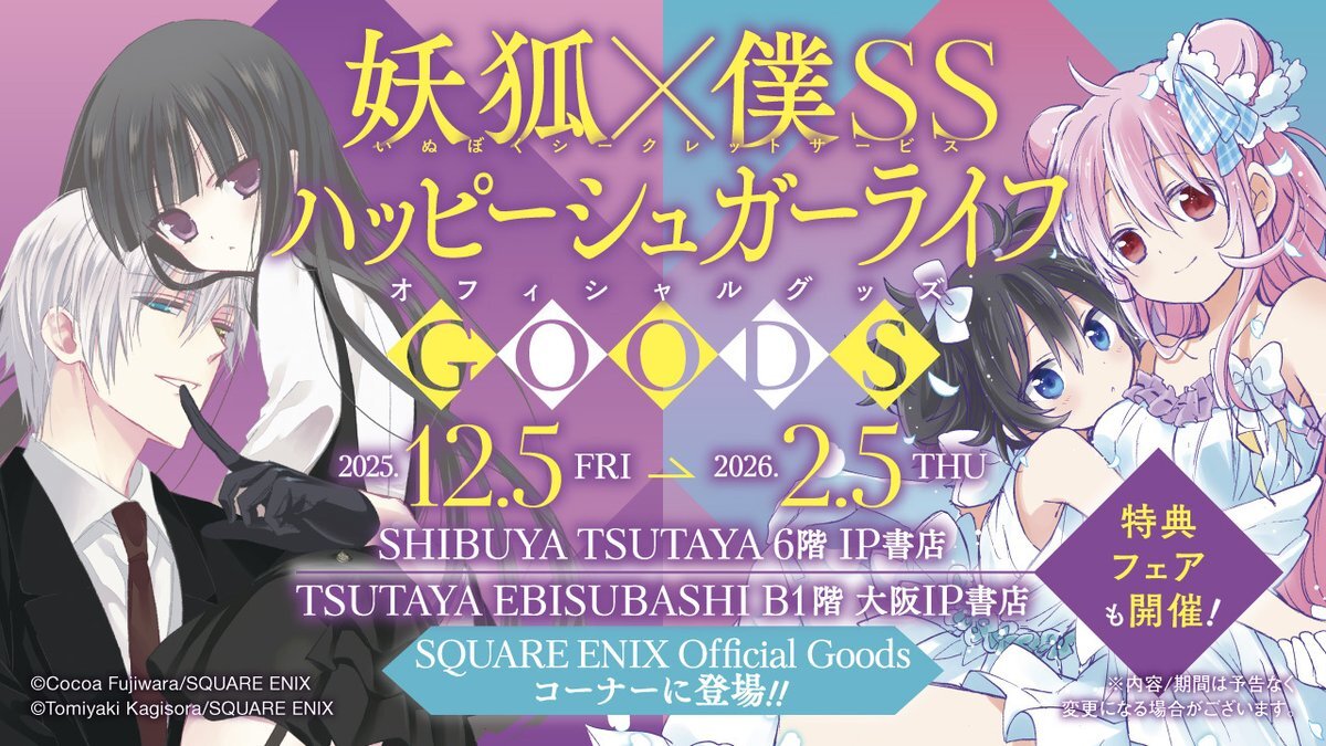 「#妖狐×僕SS」「#ハッピーシュガーライフ」グッズ✨ ●SHIBUYA TSUTAYA6階 #IP書店 ●TSUTAYA EBISUBASHI B1階 #大阪IP書店 にて12/5㊎より販売決定!! さらに特典がもらえるフェアも開催🎁 詳細はHPをチェック▼ tsutaya.jp/shibuya_ip2511… #inuboku #エビツタ pic.x.com/zRVpb5FmFb