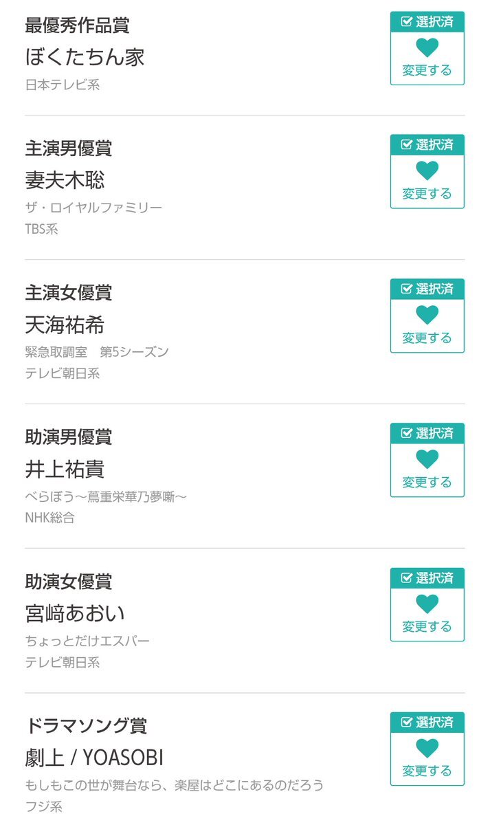 マイ #ドラマアカデミー賞 作品 #ぼくたちん家 主演 #妻夫木聡 #天海祐希 助演 #井上祐貴 #宮﨑あおい 主題歌 #YOASOBI 『劇上』 脚本 #森下佳子 演出 #塚原あゆ子 #松田礼人 #府川亮介 #ロイヤルファミリー #緊急取調室 #キントリ #大河べらぼう #ちょっとだけエスパー #もしがく pic.x.com/LKkeeUk762
