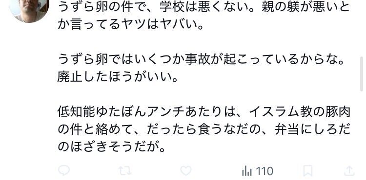 うずら卵の件で、学校が悪い。親は悪くないとか言ってるヤツはヤバい。 子供👦🏻が亡くなったのは気の毒だけど、いくら何でも6000万円の損害賠償を求めるのはお門違いだからな。 低知能ゆたぼん信者あたりは、このようなモンペを擁護しそうだが。 #子持ち様(笑) #他責思考 pic.x.com/BB6138mxTy