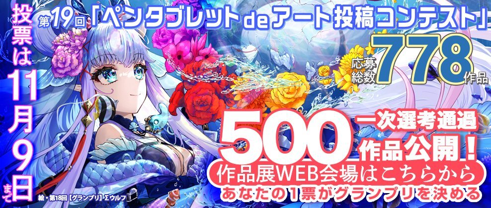 〘第19回ペンタブレットdeアート投稿コンテスト〙 一次選考通過・500作品を発表中! ▼作品展WEB会場でチェック  pentablet-art.com ✅11月9日まで 📣お気に入り作品への応援投票も開催! グランプリをはじめとした入選作品は #季刊エス 92号(12/17発売予定)の誌面で発表します👑 #イラコン pic.x.com/iBX4WBRHY2