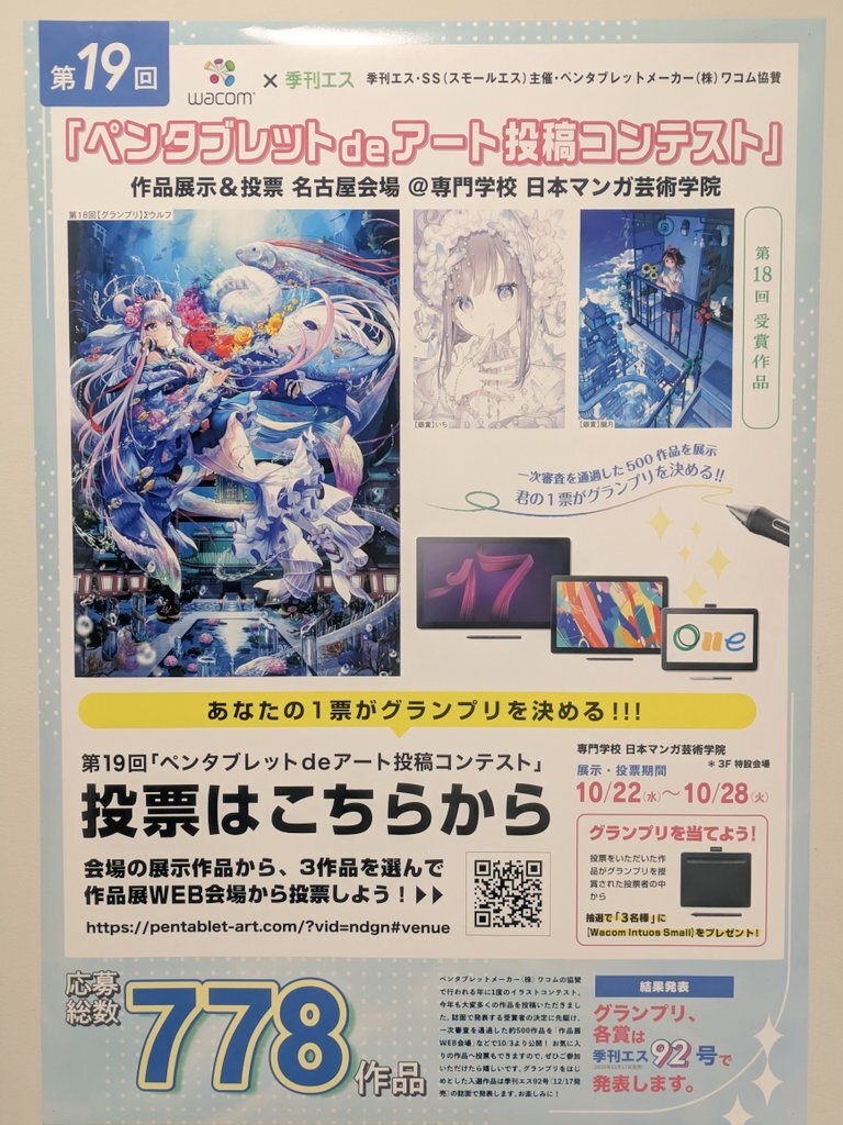 /  展示会🖼️ \ 今年も「ペンタブレットdeアート投稿コンテスト」の展示&投票会場に選ばれました! 10月25日(土)の体験入学でもご覧になれます♪ #イラスト #ペンタブレット #wacom #季刊エス pic.x.com/TvT1hzrWud