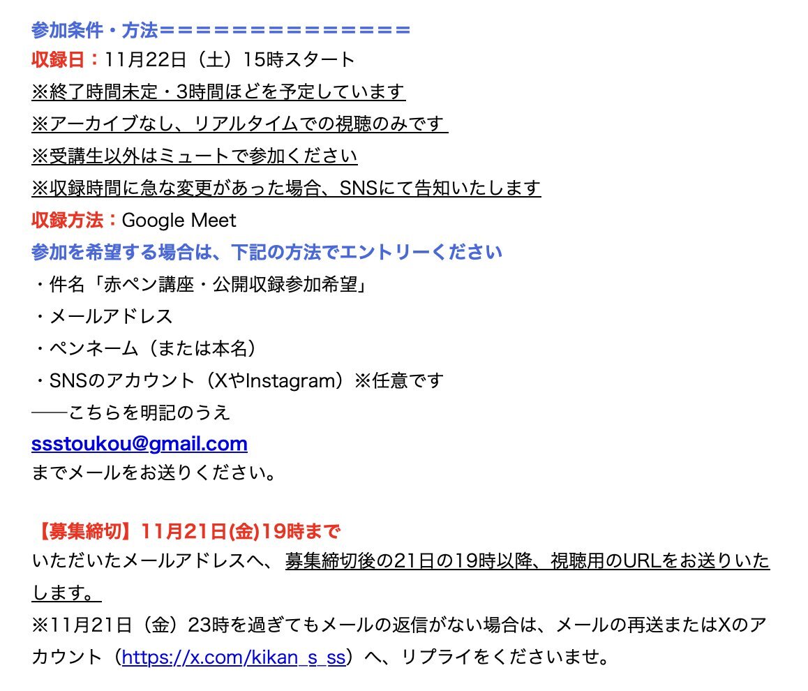 【赤ペン講座】11/22開催・公開収録のおしらせ #季刊エス で連載中のアニメーター・田中将賀さんがイラストにアドバイスを行う添削企画🖍️これまで参加者のみで収録を行ってきましたが、絵の悩みや気になることは共通していると感じ、公開収録を実施することにしました。参加方法は画像をチェック✅ pic.x.com/HsElYUoMpv