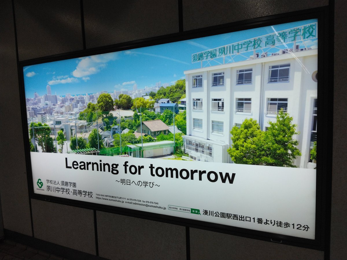 夙川中学校・高等学校 Learning for tomorrow   -明日への学び- 2025年11月 神戸地下鉄 湊川公園駅にて #学校広告 pic.x.com/jLHb2bKlpn
