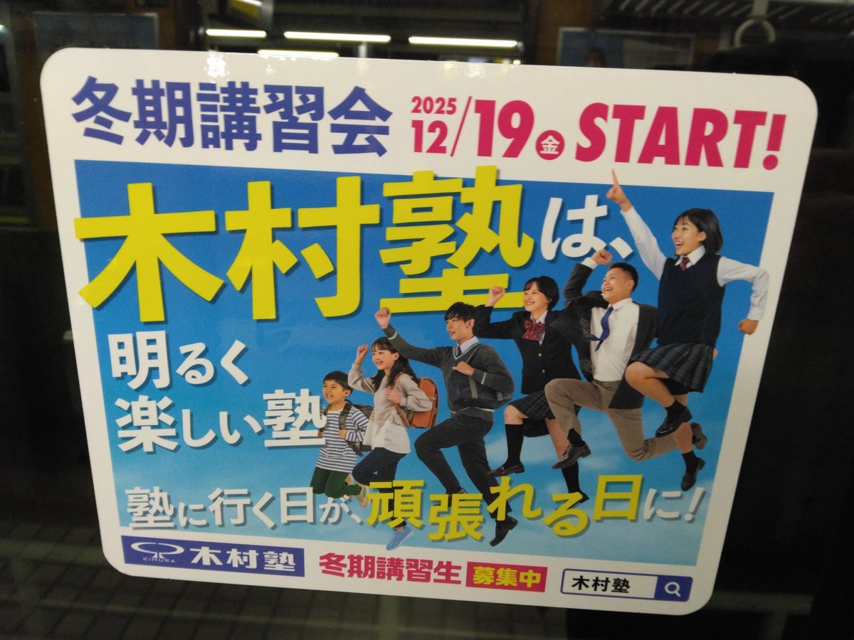 木村塾 塾に行く日が、頑張れる日に! 2025年11月 阪急電鉄 車内にて #学校広告 pic.x.com/ZwTXXT80fo