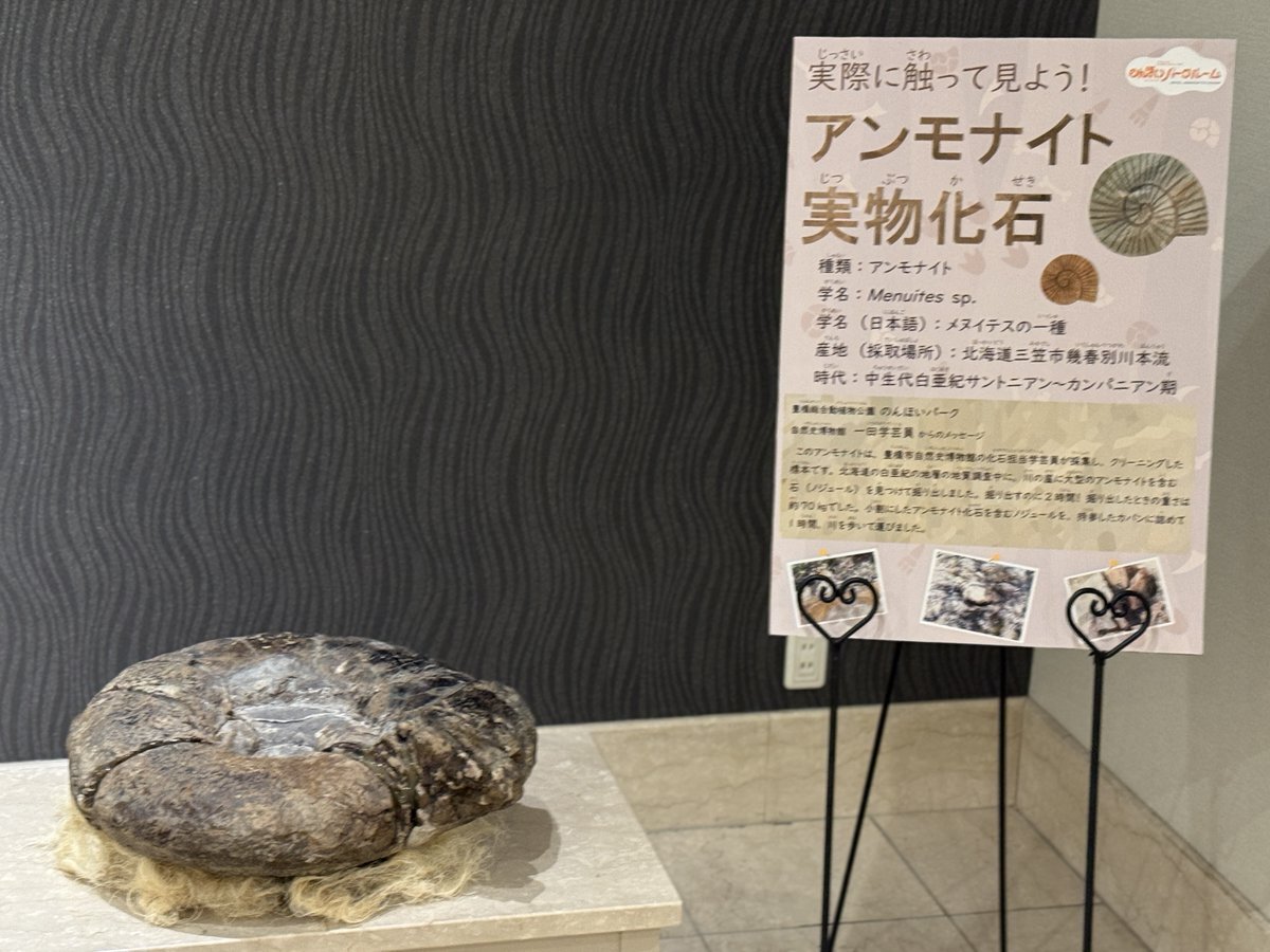 豊橋市自然史博物館がホテルアソシア豊橋との連携企画で、同ホテルロビーに北海道三笠市産アンモナイト化石を出張展示。一田学芸員のメッセージ付き。タッチできます(^-^)/ #のんほいパーク #豊橋市自然史博物館 #ホテルアソシア豊橋 #アンモナイト #学芸員 pic.x.com/1emzd4esZL