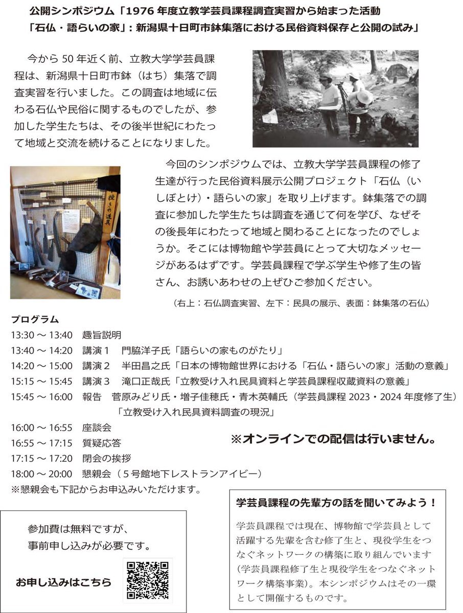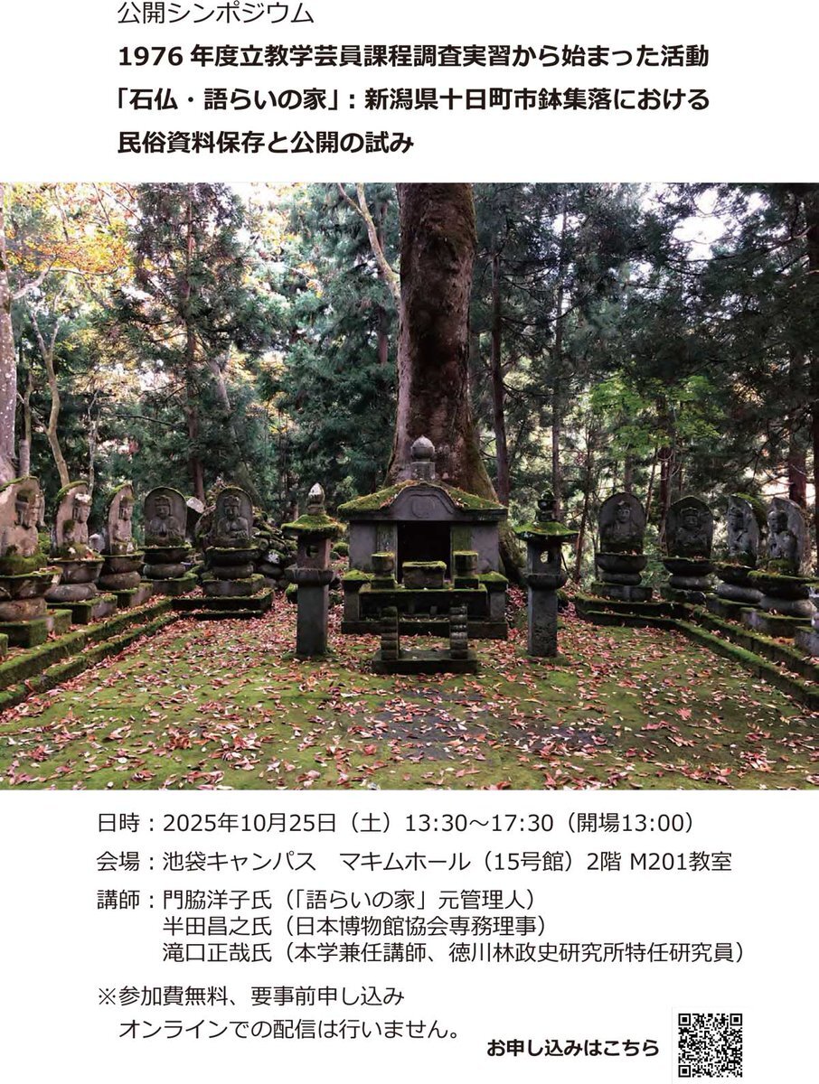 🎙10月25日(土)13:30~池袋キャンパス マキムホールにて、公開シンポジウム「1976年度立教学芸員課程調査実習から始まった活動「石仏・語らいの家」:新潟県十日町市鉢集落における民俗資料保存と公開の試み」を開催。 ※事前申し込み 必要 #立教大学 #イベント #学芸員 rikkyo.ac.jp/events/2025/10… pic.x.com/0LqqaNVEQ2