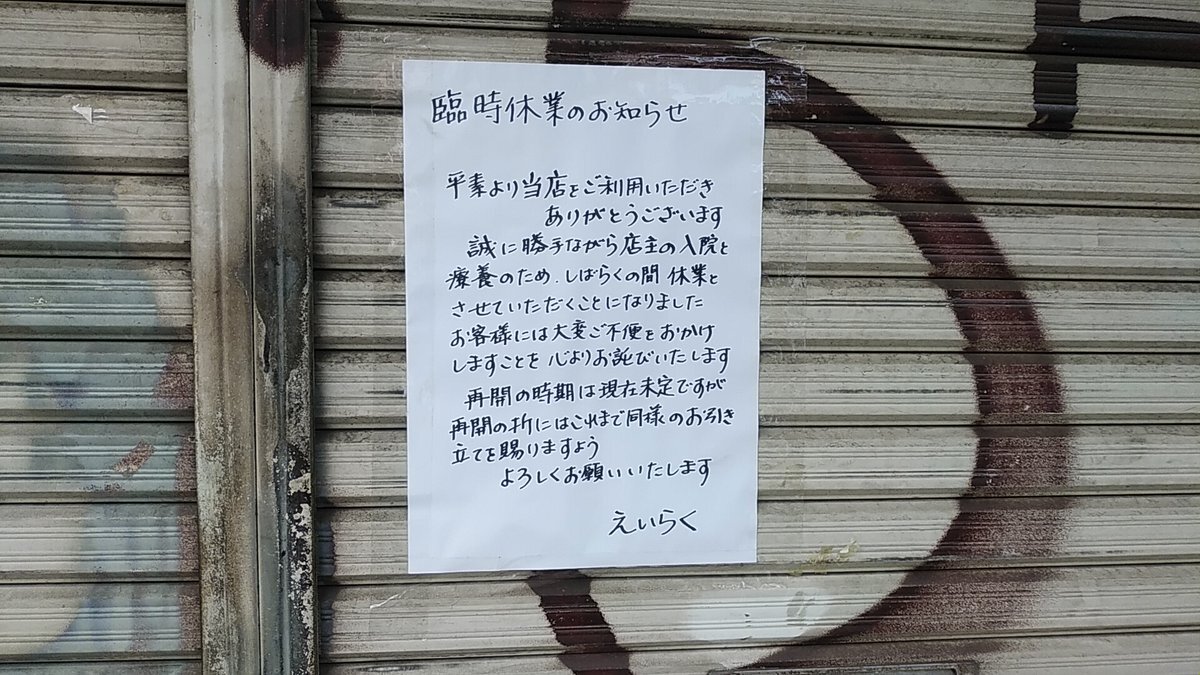 龍雲寺交差点近くの洋喫華えいらくがご主人の入院・療養のため、しばらく休業とのこと(いつからだろう)。再開時期は未定 #駒沢大学 #三軒茶屋 #学芸大学 #学大 kanzo.jp/archives/3964 pic.x.com/POjI3je0hP