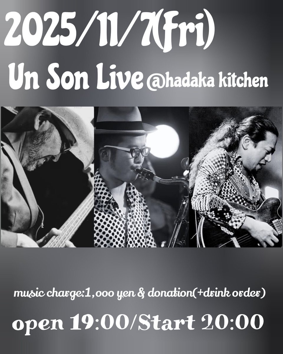 Tomorrow!! ◎2025/11/7(Fri)Un Son投げ銭Live ameblo.jp/naked-shin/ent… Open:19:00/Start:20:00(通常営業22:00~予定) ※music charge:1000円+愛の投げ銭制(+drink別オーダー) 03-6455-0252 #unson #Live #投げ銭 #ハダキチ #ハダカキッチン #hadakakitchen #music #祐天寺 #学芸大学 #中目黒 pic.x.com/lhjZbF7S7S
