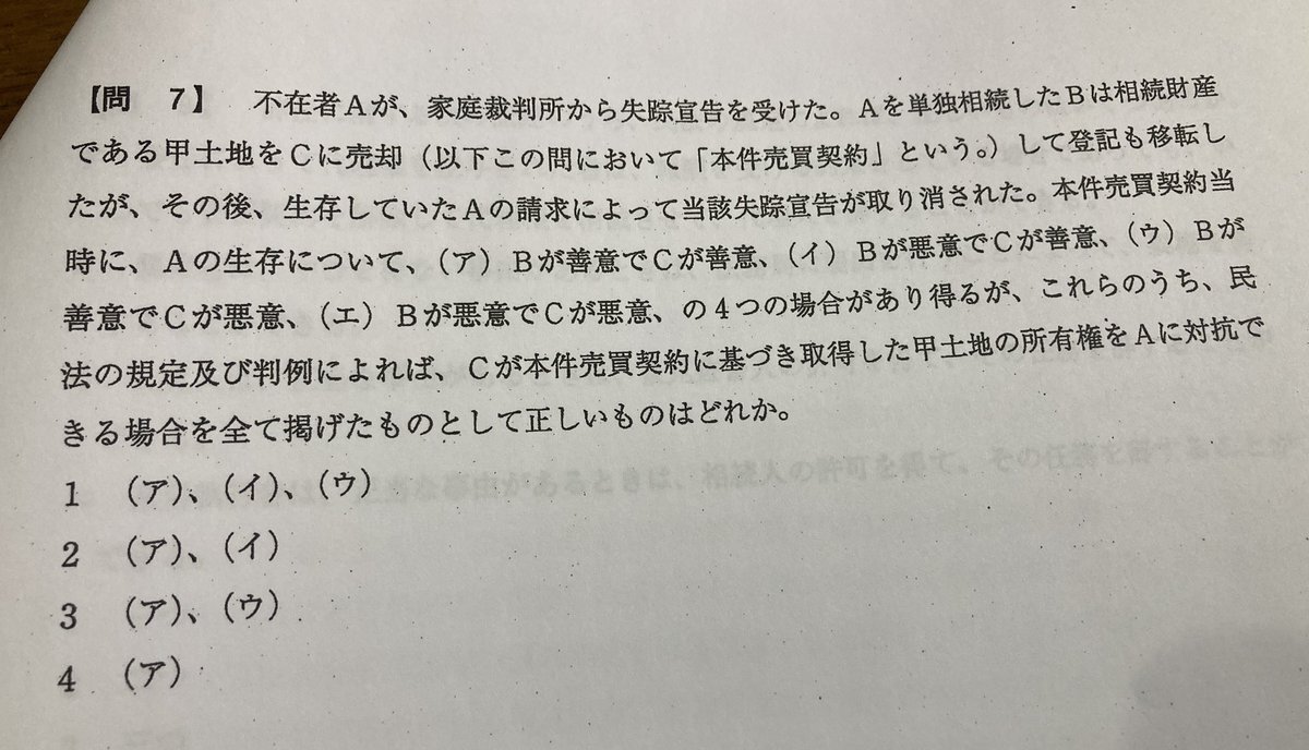 令和四年宅建試験 問10。 私は④を選びましたが、正解は②でした。 時効取得と登記の対抗関係について、理解が及んでいなかったと感じています。 まだまだ勉強途中ですので、基礎から静かに学び直します。 #宅建士 #宅建試験 pic.x.com/IYZFwKHe8O