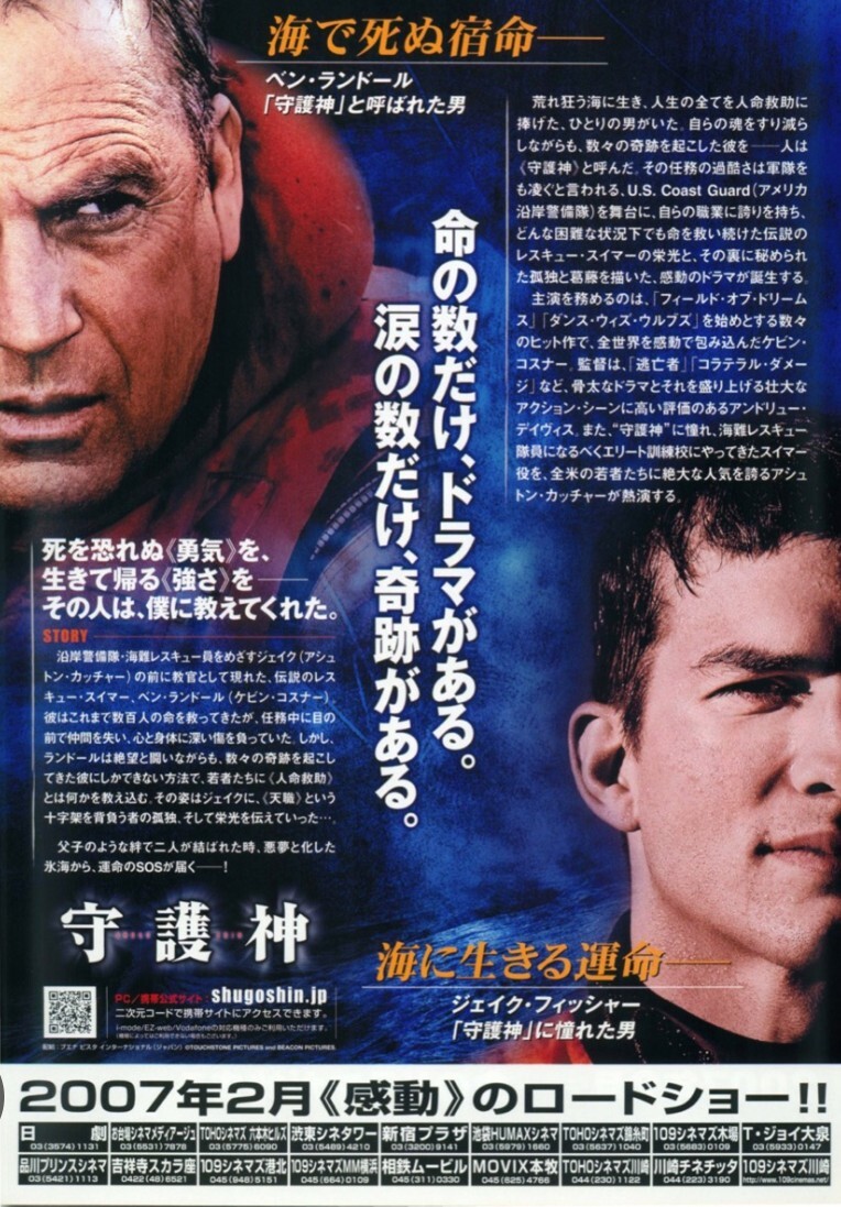 沿岸警備隊員の訓練校が主な舞台という内容から、“米国版「海猿」”との評判を呼び、日本でもヒットを記録した。コスナー演じる先輩と対立しながら、やがて強い絆を結ぶ訓練生役を「バタフライ・エフェクト」のA・カッチャーが演じ、こちらも好演。監督は「逃亡者(1993)」のA・デイヴィス。 #守護神 pic.x.com/2hWMoTtLoa