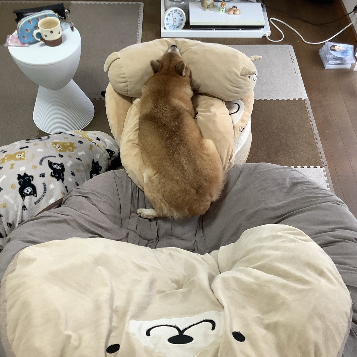 試行錯誤でこーなりましたワン 1つのチェア~を仲良くシェアワン(″ ̄3 ̄)💤 #寒くなってきたら #母ちゃんのお股の間 #暖かくて #安心できる場所🙄🐕 pic.x.com/q9rpolFT7v x.com/ic6idqmc73qeus…