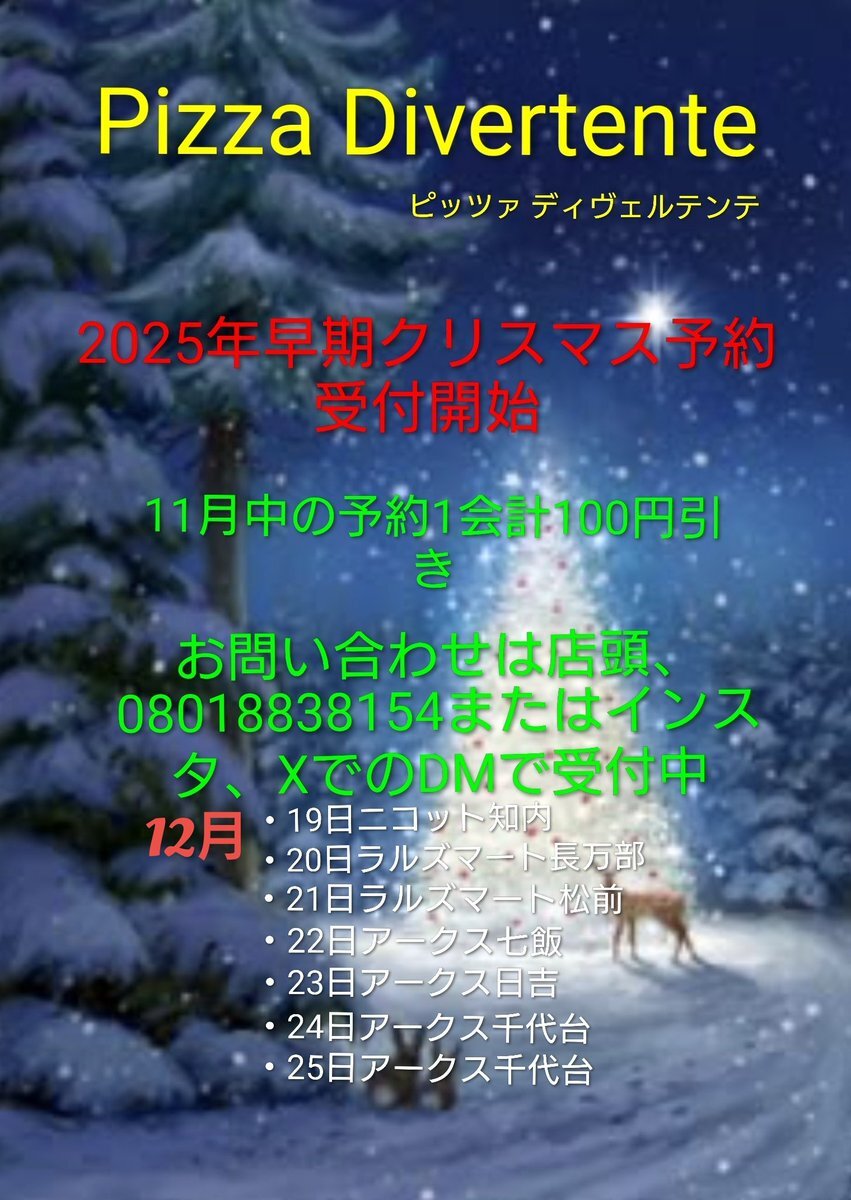 本日も沢山のご来店ありがとうございました🙇🍕 明日は今年最後の定休日になります🙏 19日はDCMニコット知内店さんからの出店になります😉🤟 食べ納めですので皆さんのご来店お待ちしとります😊 #ピッツァディヴェルテンテ #テンテ #ピーすけ #キッチンカークラブ #定休日 #クリスマス予約受付中 pic.x.com/5lktlx2tjM